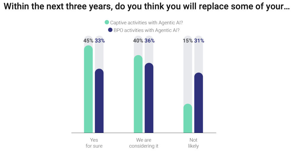45% of respondents believe they will replace some captive activities with Agentic AI within the next three years.